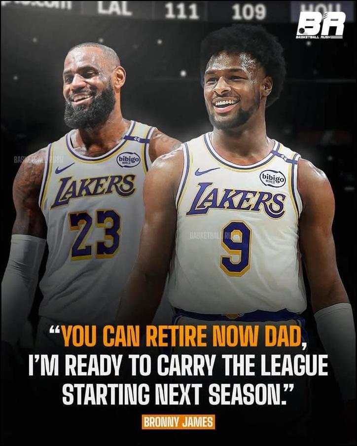The alleged confrontation occurred in the sanctity of the Lakers’ practice facility, just hours after the starting lineup announcement. According to multiple reports, Bronny approached his father, who was reportedly beaming with pride over his son’s achievement. The atmosphere, initially celebratory, quickly turned electric when Bronny, with an unwavering gaze, uttered the words that will echo through NBA history. “Dad,” he reportedly began, “I love you, and everything you’ve done for this game, for this team, for me. But… you can retire now. I got this. The kingdom needs a new ruler, and I’m ready to take the throne.”